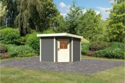 KARIBU Gartenhaus Kerko 5, Terragrau, Fichtenholz 19mm, 591,5 X 246 X 210 Cm, Flachdach, Anbau 2,8m