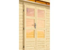 KARIBU Gartenhaus Kastorf 7, Terragrau, Fichtenholz 28mm, 702 X 244 X 222 Cm, Flachdach, Anbau 3,2m