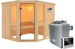 KARIBU Svea Sauna , Naturbelassen, Fichte, 196x146x198 Cm, Klarglastür, Ofen 4,5 KW Integr. Strg.