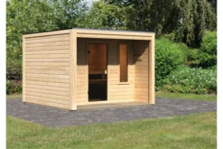 KARIBU Eldor Saunahaus, Naturbelassen, Fichte, 276x276x210 Cm, Mit Bronzierter Tür Und Terrasse