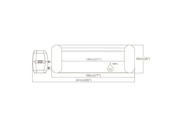 | Zubehör inklusive Mit im Lieferumfang enthalten sind neben der AirJet-Pumpe, zwei passende Filterkartuschen, eine Fernbedienung für die LED-Beleuchtung, ein Chemikaliendosierer, eine aufblasbare Abdeckung mit Clipverschlüssen und ein selbstklebender Reparaturflicken. | |