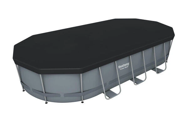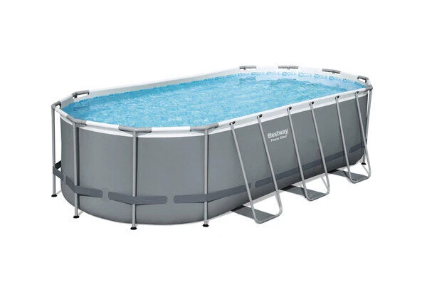 BESTWAY Power Steel Pool Komplett-Set, grau, TriTech, ca. 549 x 274 x 122 cm, oval, mit Filterpumpe, Leiter, Abdeckplane