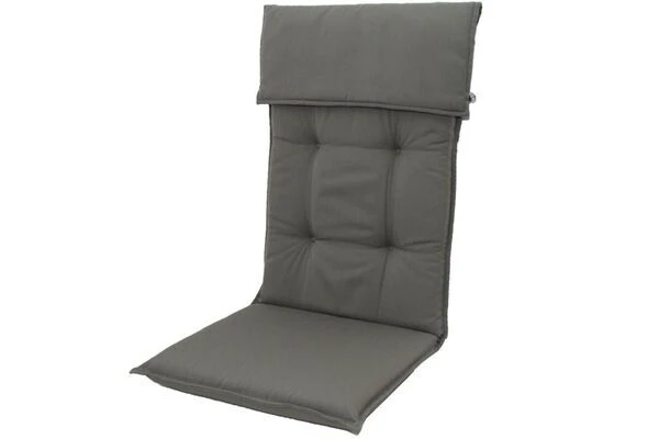 Der Bezug wird aus 100% Acrylfaser (Dralon®) mit Teflonbeschichtung gefertigt, was sie gemütlich und gleichzeitig unglaublich pflegeleicht macht. Das Polster ist abwischbar, aber dennoch luftdurchlässig, damit Sie nicht unnötig schwitzen, wenn Sie auf diesen sitzen oder liegen. Die Auflage bietet dank der Färbung in einem schönen Grauton auch einen tollen Farbtupfer für Ihre Möbel. Durch die verstellbare Halterung mit Klickverbindung an der Rückseite und die Bindekordeln an der Sitzfläche lässt sich die Auflage kinderleicht fixieren und verrutscht nicht so leicht, auch wenn der Stuhl eine glatte Oberfläche besitzt. Dank der Maße von ca. 120 x 50 cm passt sich die Auflage perfekt an die meisten Hochlehner an. Der Komfort kommt selbstverständlich nicht zu kurz – dafür sorgt neben dem weichen, ca. 7 cm starken Kern auch das zusätzliche Kopfpolster. Ob zum Sonnen, beim Grillabend oder bei der Familienfeier – diese Auflage macht stets eine gute Figur.