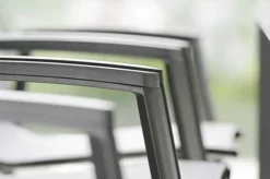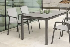 STERN Polaris Esstischgruppe, Silbergrau, Edelstahl/recycled Teak, Tisch 180 X 90 Cm, 4 Stapelsessel