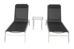 VILLANA 2er-Set Sonnenliegen, Silber/schwarz, Alu/Textil, 198x66x32cm, Mit Beistelltisch 45x45cm
