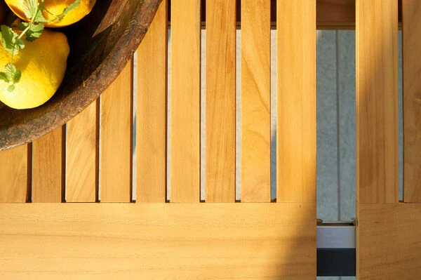 Die Tischleisten aus FSC-zertifiziertem Teakholz verleihen diesem Tisch einen ganz besonderen Charme. Darüber hinaus ist Teakholz besonders witterungsbeständig und hält sowohl Hitze und Frost, als auch Regen und Feuchtigkeit aus. Es hat außerdem aufgrund des hohen Anteils an holzeigenen Ölen einen natürlichen Schutz gegen Pilze und andere Schädlinge.