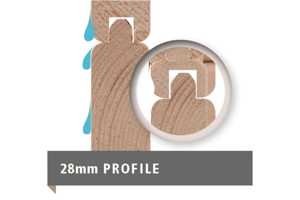 | Aus nordischer Fichte Insbesondere bei Gartenhäusern eignet sich die naturbelassene oder lackierte nordische Fichte, auf Grund ihrer widerstandsfähigen Materialeigenschaften und der einheitlichen Optik. |