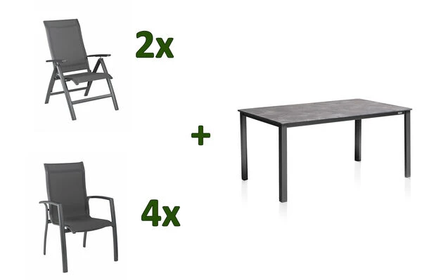 KETTLER Cubic/Legato Esstischgarnitur, anthrazit, Alu/Kettalit/Textilene, 160×90 cm, 4 Stapel/ 2 Multipos