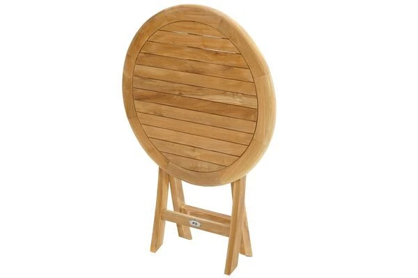Eleganter, runder Klapptisch aus SVLK-zertifiziertem Teakholz