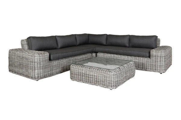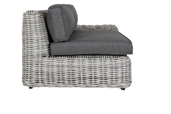 Polyrattan – ein zeitloser Klassiker – Die hier verwendeten Polyrattan Fasern in white faded grey bringen neue Farbe in Ihren Garten. Kombiniert mit den Kissenbezügen in Anthrazit harmonieren sie perfekt. Als zeitloser Klassiker wird Polyrattan Ihren Ansprüchen an Qualität in allen Belangen gerecht. Polyrattan ist strapazierfähig, pflegeleicht und witterungsbeständig, so dass diese Loungegarnitur problemlos das ganze Jahr über im Freien stehen kann.