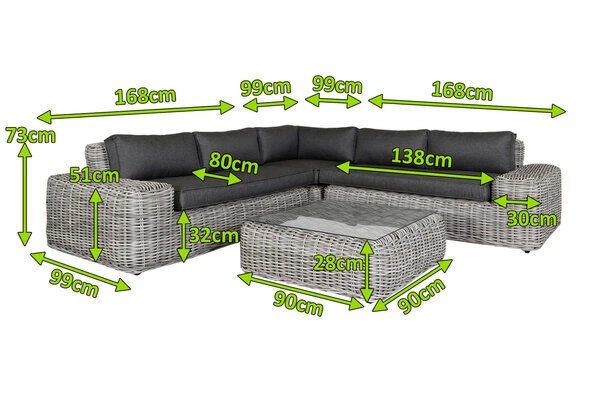 - Eckelement: ca. 99 x 99 x 73 cm