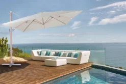 Das OUTFLEXX® Ersatztextil für den quadratischen Ampelschirm mit Maßen von ca. 350 x 350 cm ermöglicht ein neues Bespannen des Schirmdachs. Das Gewebe bietet Ihnen einen UV-Schutz von 80+, ist wasserabweisend imprägniert und besteht aus 100 % Polyester (250 g/m²) in der Farbe Anthrazit. Nicht nur die verwendeten Materialien machen dieses Ersatzdach zu einer guten Wahl, auch die erstklassige Verarbeitung werden Sie zu schätzen wissen.