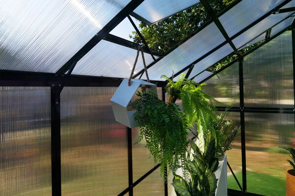 Maßgeblich gekennzeichnet durch ein edles, schwarzfarbenes Aluminiumgestell und fast transparente Seiten- und Dachteile macht dieses Gewächshaus in jedem Garten eine gute Figur und bietet Ihren Pflanzen dabei ein geschütztes Leben weitab von lästigen Schädlingen und Wind. Dieses formschöne Gewächshaus bietet aber nicht nur Ihren Pflanzen ein schönes Plätzchen, sondern spendet auch Ihnen einen Zufluchtsort vom Alltag, an dem Sie einfach mal die Seele baumeln lassen können.