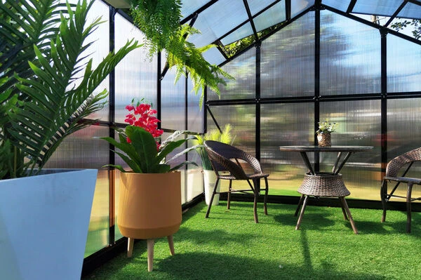 - Material Dach und Wände: Polycarbonat (6 mm)