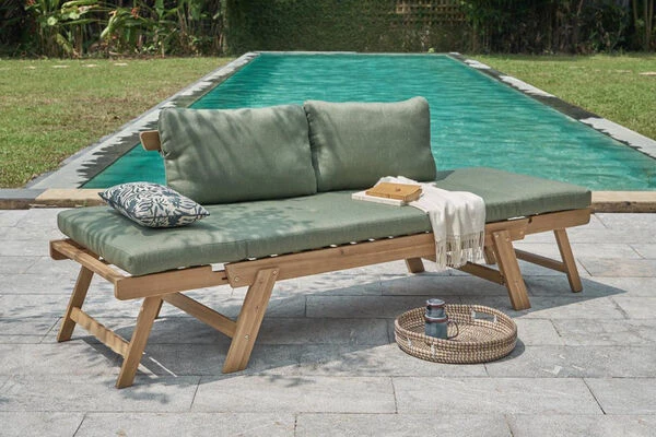 OUTFLEXX Lounge/Liege, FSC Akazie, Teakoptik, 192x70x60cm, Inkl. Polster, Grün