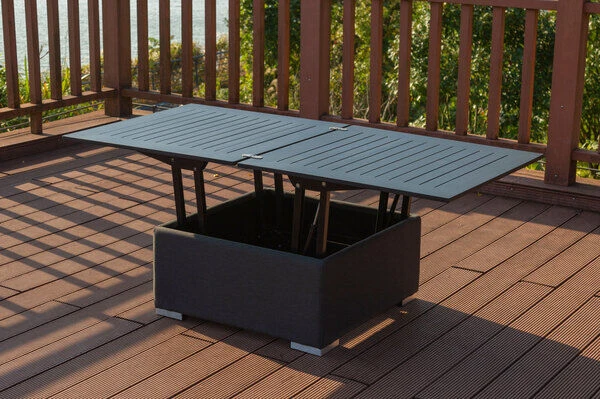 Mit dem Multitalent von OUTFLEXX® gehen Sie keine Kompromisse ein: Loungetisch oder Esstisch? Hier erhalten Sie beides in einem!