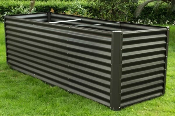 Das anthrazitfarbene Hochbeet aus dem Material Zincalume, hat die Maße von ca. 120 x 90 x 84 cm und ist dank seines Gewichts von nur ca. 16,8 kg sehr flexibel und kann kinderleicht umgesetzt werden. Die anthrazitfarbene Hochbeetverlängerung aus dem Material Zincalume, hat die Maße von ca. 80 x 90 x 84 cm. Beim Werkstoff „Zincalume“ handelt es sich um ein mit Zink und Aluminium beschichtetes Stahlblech, das durch die Beschichtung jahrelang resistent gegen Umwelt- und Witterungseinflüsse ist. Seine Lebensdauer ist vier mal länger als bei galvanisiertem Stahl.