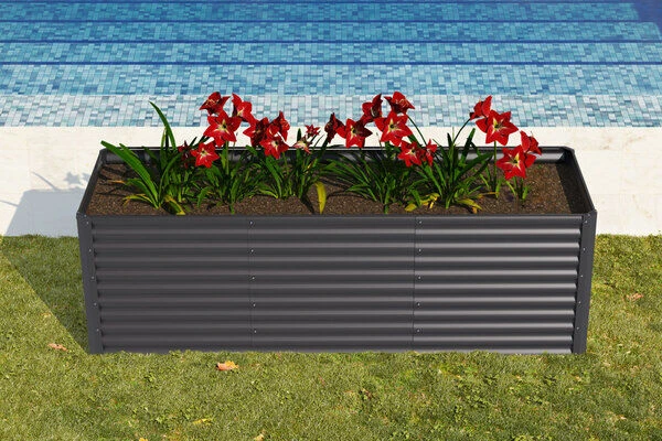 Das anthrazitfarbene Hochbeet aus dem Material Zincalume, hat die Maße von ca. 180 x 90 x 84 cm und ist dank seines Gewichts von nur ca. 15,7 kg sehr flexibel und kann kinderleicht umgesetzt werden. Die anthrazitfarbene Hochbeetverlängerung aus dem Material Zincalume, hat die Maße von ca. 80 x 90 x 84 cm. Beim Werkstoff „Zincalume“ handelt es sich um ein mit Zink und Aluminium beschichtetes Stahlblech, das durch die Beschichtung jahrelang resistent gegen Umwelt- und Witterungseinflüsse ist. Seine Lebensdauer ist vier mal länger als bei galvanisiertem Stahl.
