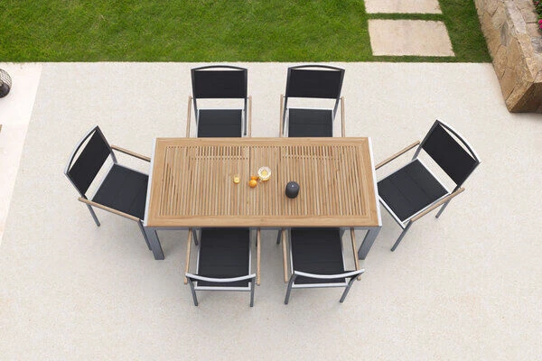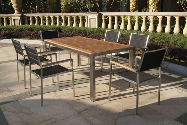Das verwendete Teakholz ist FSC-zertifiziert und stammt damit aus verantwortungsvollen Quellen. So können Sie sich guten Gewissens zurücklehnen und sich so richtig entspannen. Teakholz und Edelstahl sind besonders witterungsbeständig und halten sowohl Frost und Hitze als auch Feuchtigkeit und Regen aus. Teakholz hat aufgrund des hohen Anteils an holzeigenen Ölen einen natürlichen Schutz gegen Pilze und Schädlinge. So beschränkt sich die Pflege Ihrer neuen Gartenmöbel auf ein Minimum und Sie können Ihre Zeit im Garten mit angenehmen Tätigkeiten verbringen.