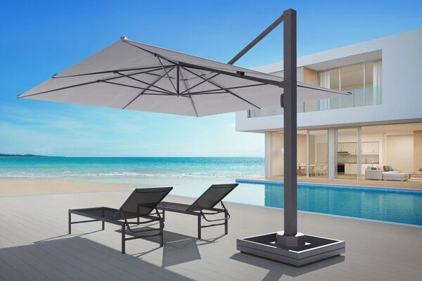 OUTFLEXX Ultimate XL Ampelschirm, Anthrazit/grau, Alu/Spuncrylic®, 450x450cm, Inkl. Befüllbarem Schirmständer