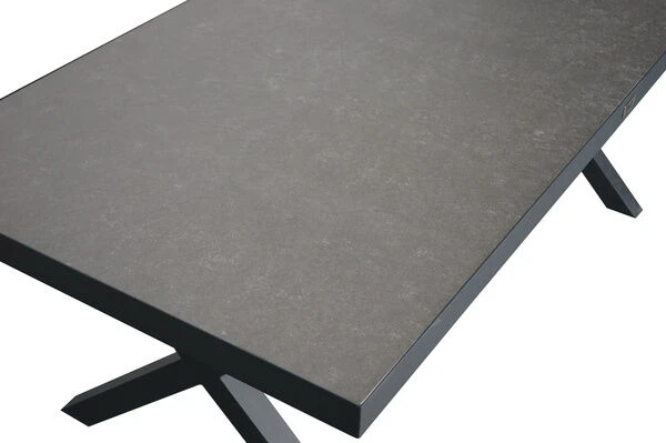 Die Serie Canberra aus dem Hause Ploß überzeugt durch ihre schlichte Eleganz und die hochwertigen Materialien. Das Gestell der Tische besteht aus pulverbeschichtetem Aluminium, welches vor allem durch robuste und langlebige Eigenschaften überzeugt. Die Tischplatte besteht zuverlässigem Keramik-Glas und schafft in Kombination mit dem X-Gestell eine moderne Optik in gedeckten Farben. Zusätzlich überzeugen die Möbel durch ihre Unempfindlichkeit und einen geringen Pflegeaufwand. Die Möbel lassen sich flexibel zu beinah allen Terrassen- und Garteneinrichtungen kombinieren.