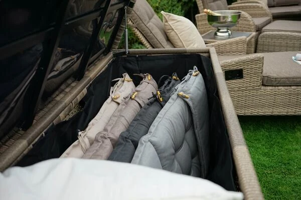 | Genügend Stauraum Die Kissenbox von Ploß mit den Maßen von ca. 145 x 58 x 73 cm bietet genügend Stauraum für Sitzkissen, Auflagen und Polster. | |