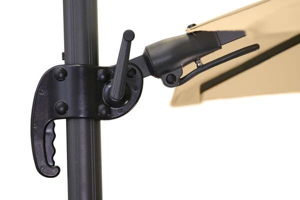 | Kurbelsystem Mit der im Griffteil eingearbeiteten Kurbelmechanik können Sie den Schirm ganz einfach öffnen und schließen. Des Weiteren können Sie hiermit die Dachneigung komfortabel einstellen. |