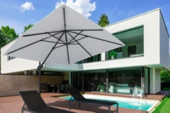 Aluminium ist ein sehr schönes und besonders pflegeleichtes Material. Daher wird es gerne für die Herstellung von Sonnenschirmen verwendet. Sonnenschirme aus Aluminium können Sie unbesorgt das ganze Jahr über im Freien stehen lassen. Das Material ist ziemlich unempfindlich und hält spielend Kälte und Frost stand. Um die Haltbarkeit der Sonnenschirme noch zu verlängern, sollten Sie diese mindestens zweimal jährlich mit einfachen Pflegemitteln reinigen. Die Pulverbeschichtung schützt zusätzlich vor Korrosion und bietet kratzfeste, schlagfeste, sowie witterungsfeste Eigenschaften.