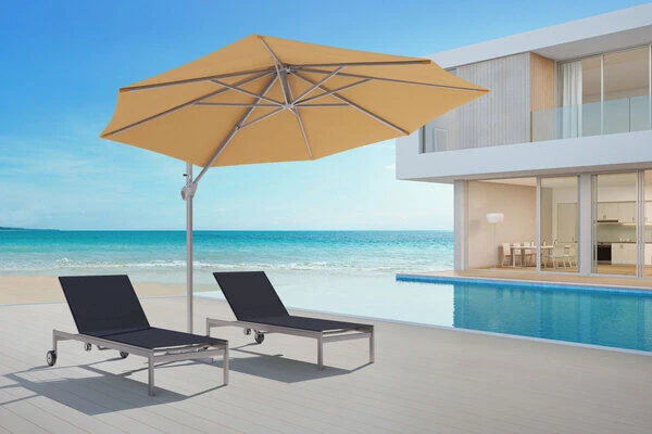Schneider® SCHNEIDER Thassos Ampelschirm, Natur/silber, Rund, Ø 330cm
