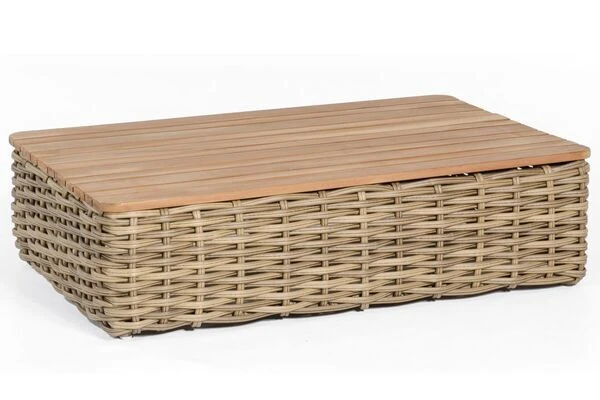 Die verwendeten Materialien machen die Lounge äußerst pflegeleicht und unempfindlich gegen Kälte und Frost. Das solide und wetterfeste Aluminiumgestell ist beflochten mit einem PE-Kunststoffgeflecht im modernen Farbton „light oaks“. Das Kunststoffgeflecht ist besonders farbecht und UV-beständig, sodass die Farbe der Lounge äußerst lange frisch aussehen wird. Eine rustikale Teakholz-Tischplatte rundet das Gesamtpaket optisch ab.