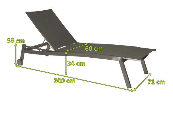 STERN Allround Rollenliege, Silbergrau, Edelstahl/Textil, 200x71x38 Cm, Verstellbare Rückenlehne